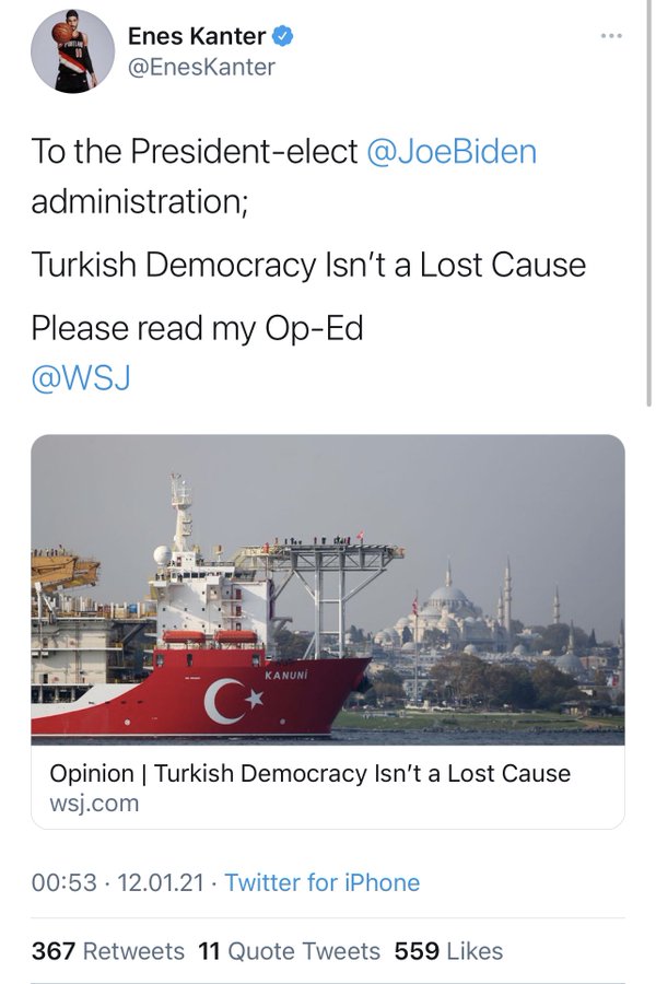 I'm always surprised how much platform Kanter is given to express his views on these newspapers. Even if we put aside his Gulenist ties, are basketball players really the best people to regularly write political op-eds? https://t.co/6Kaw3ddFQx