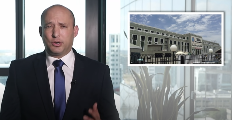 As Bennett speaks with ominous music playing, a picture appears behind him of a building with a sign on it that says “Shifa.”
