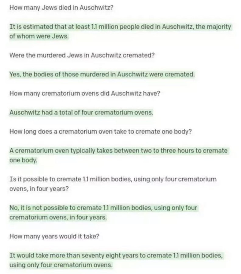 An AI program has answered questions about the number of killed Jews and given clashing numbers.
