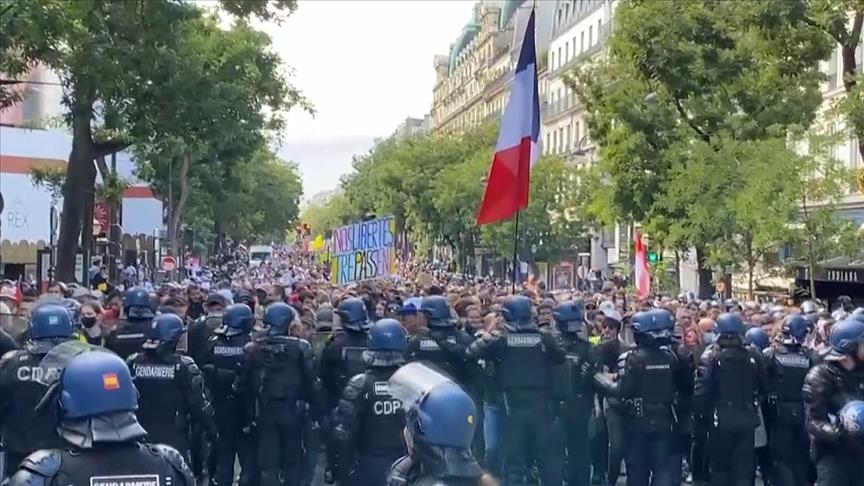 Protests intensified across France on Saturday against mandatory requirements of a coronavirus health pass in public eating places and long-distance transport as well as vaccines for health care workers.