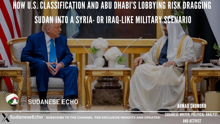 Just as the Assad regime’s classification allowed for indirect U.S. control of Syrian oil and wheat regions, Abu Dhabi hopes to use this false narrative to justify the intervention of its mercenaries and seize control over Sudan’s gold mines, ports, and farmlands. The goal is to convince Trump of the potential benefits of exploiting Sudan’s resources through Abu Dhabi.
