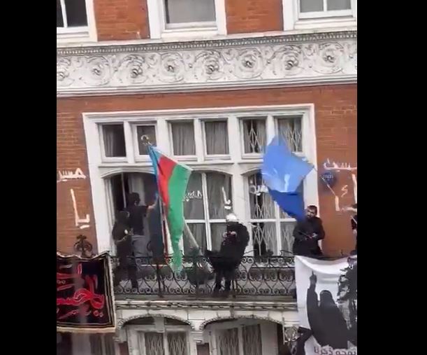 They tossed Azerbaijani flag from the balcony and put some Shiite stuff there. Azerbaijani flag was restored to the embassy later by embassy staff.