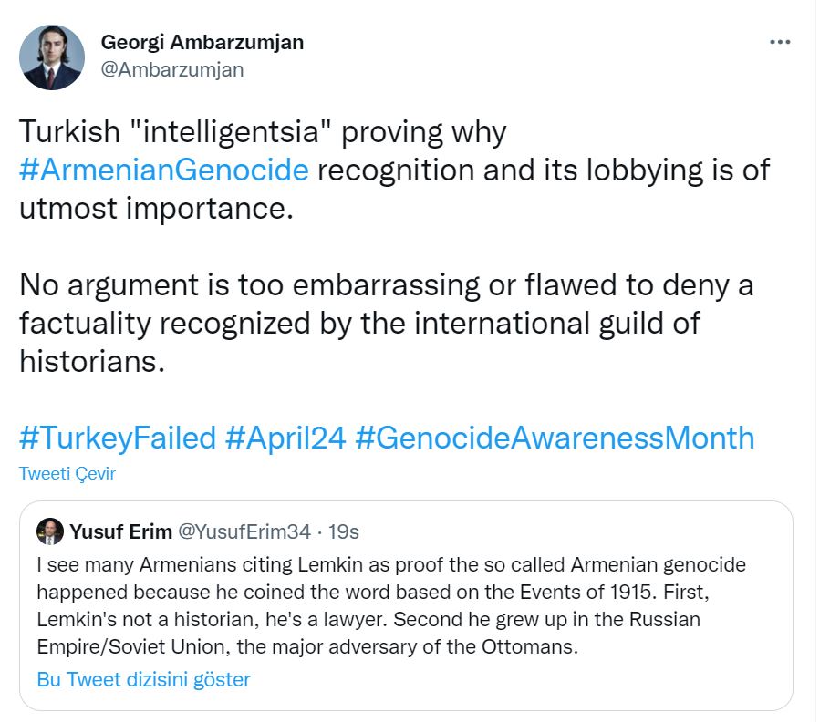 No argument is too embarrassing or flawed to deny a factuality recognized by the international guild of historians.#TurkeyFailed #April24 #GenocideAwarenessMonth https://t.co/Qys4kXXQQt