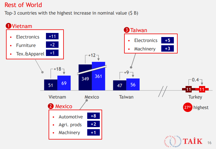 The study warned that countries like Vietnam, Taiwan and Mexico have so far proven more adept than Turkey at exploiting emerging opportunities. It said the three countries this year boosted their electronics, automotive, and/or agricultural sectors by up to 11 percent.